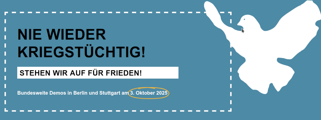 Damit wollen wir für die unteilbaren Menschenrechte für Alle und für das Völkerrecht eintreten und unsere Stimme gegen Krieg, Vertreibung und Genozid erheben.